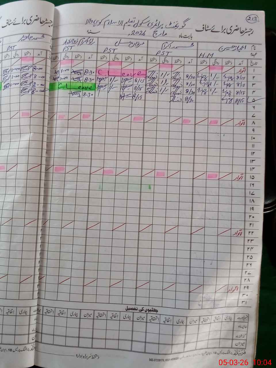 | 36**** | Ir**** Al**** | PST Arts | Regular | 0 | 0 | 0 | 0 | 0 | 0 | 0 | 0 | 0 | Absent (Un-Authorized) |