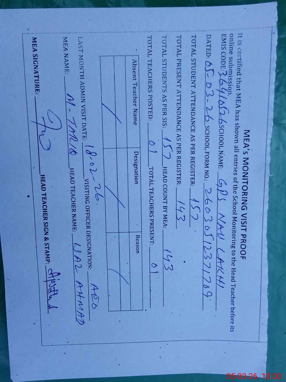 | EMIS Code: 36410526 | Name of School: GPS NAU LAKHI, P/O KOHI WALA, KABIRWALA | |||