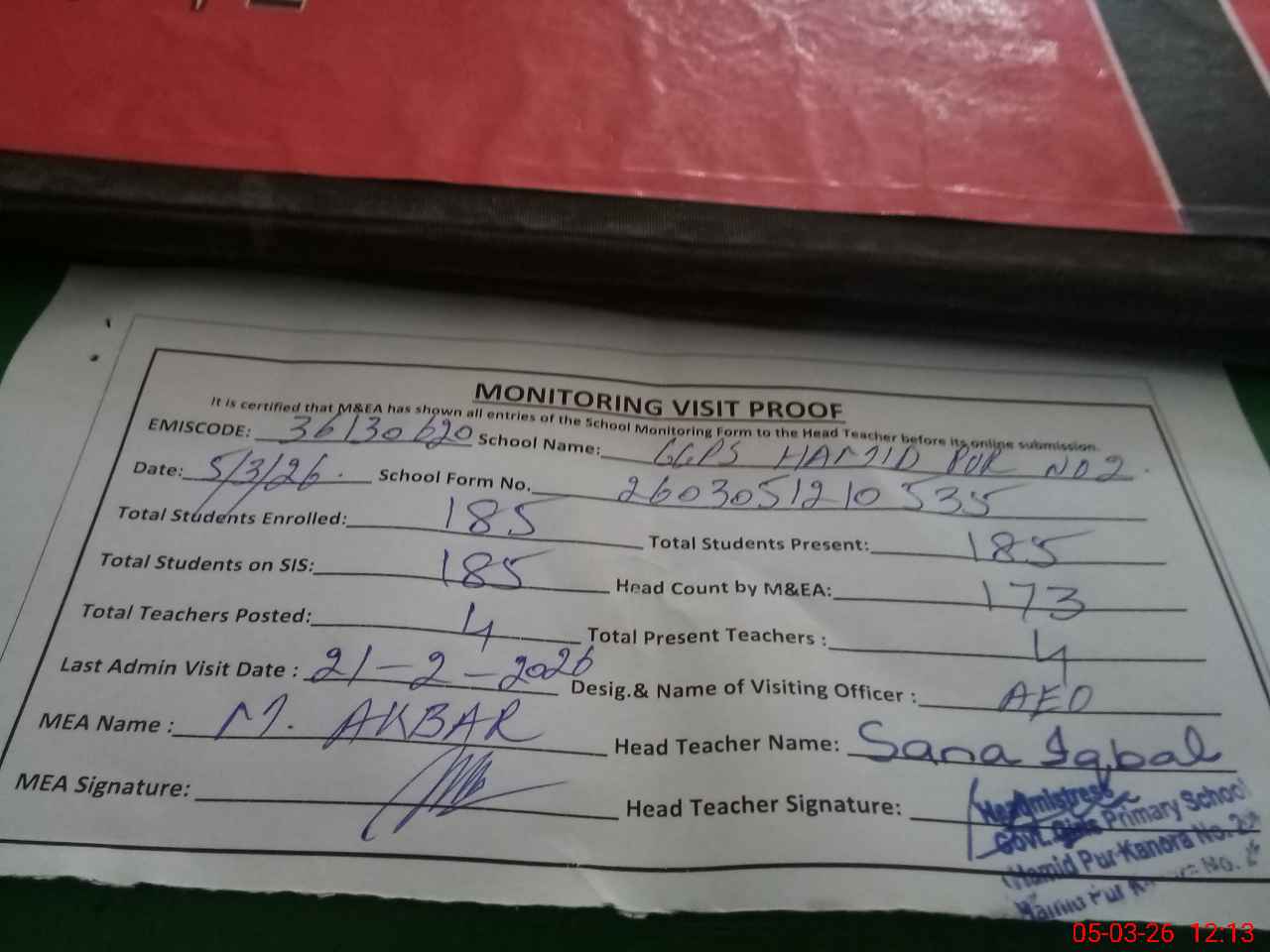 | EMIS Code: 36130620 | Name of School: GGPS HAMID PUR KANORA NO 2 | |||