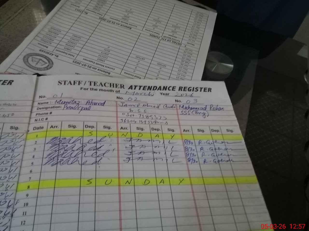 | Name: Mu**** Ah**** Designation: (School Headmaster's/Headmistress's) Principal Phone/Cell Number: 03**** |