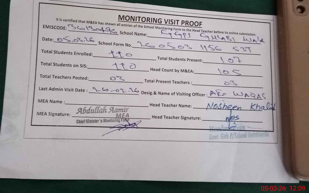 | EMIS Code: 36130496 | Name of School: GGPS GULABI WALA BASTI NOOR PUR | |||