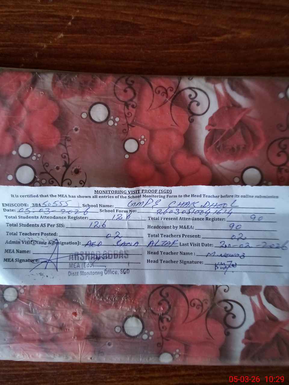 | EMIS Code: 38450555 | Name of School: GMPS CHAK DHOOL | |||