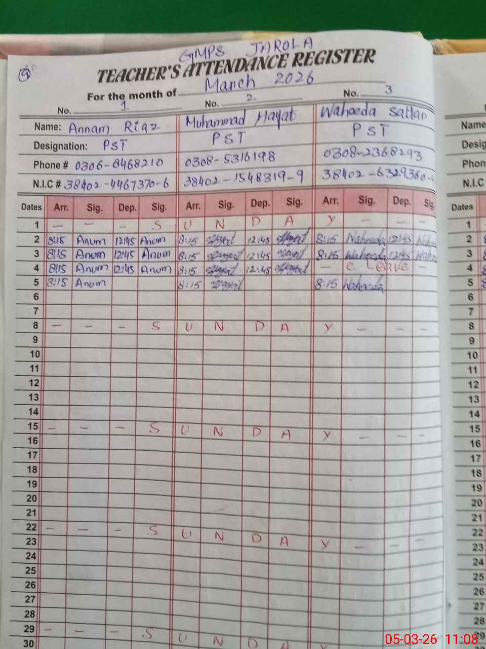 | Name: AN**** RI**** Designation: (School Headmaster's/Headmistress's) PST Phone/Cell Number: 03**** |