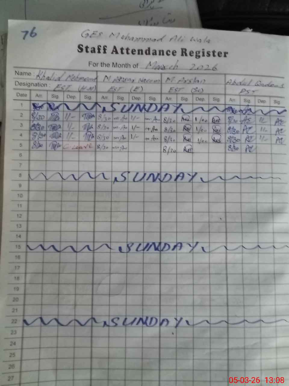 | Name: KH**** ME**** AK**** Designation: (School Headmaster's/Headmistress's) EST Phone/Cell Number: 03**** |