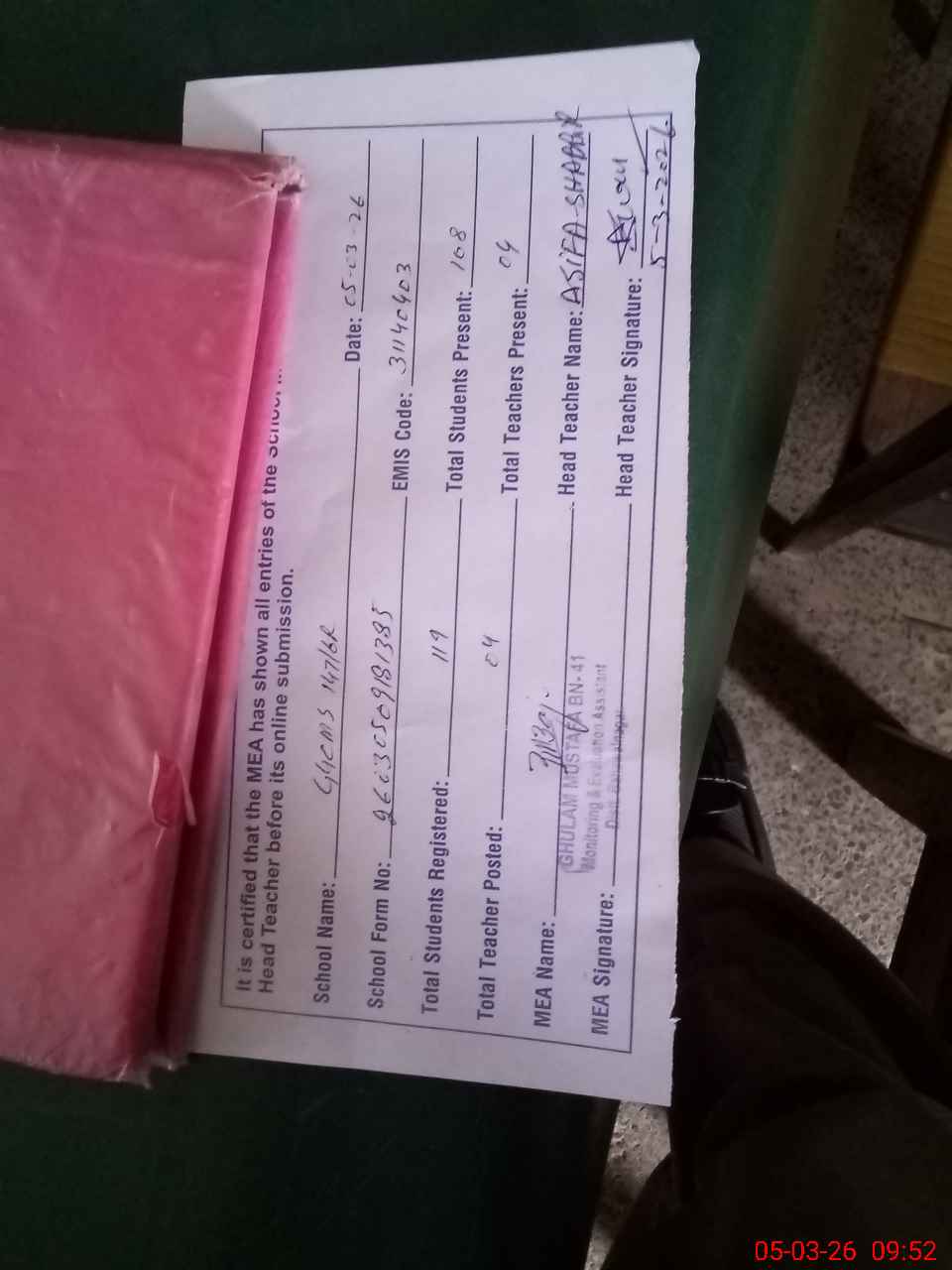 | EMIS Code: 31140403 | Name of School: GGCMS CHAK NO.147/6-R | |||