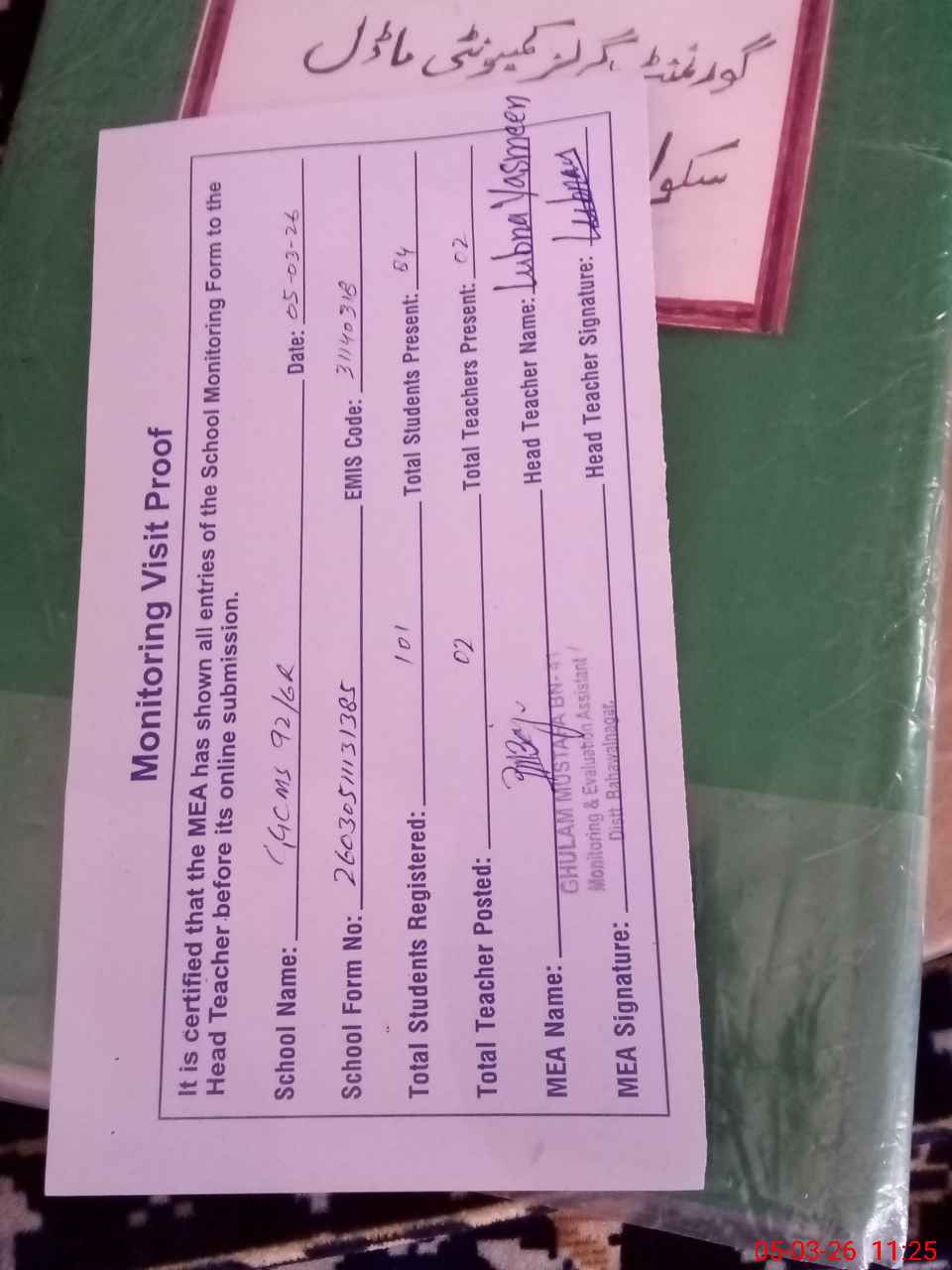 | EMIS Code: 31140318 | Name of School: GGCMS 92/6-R HAROON ABAD | |||
