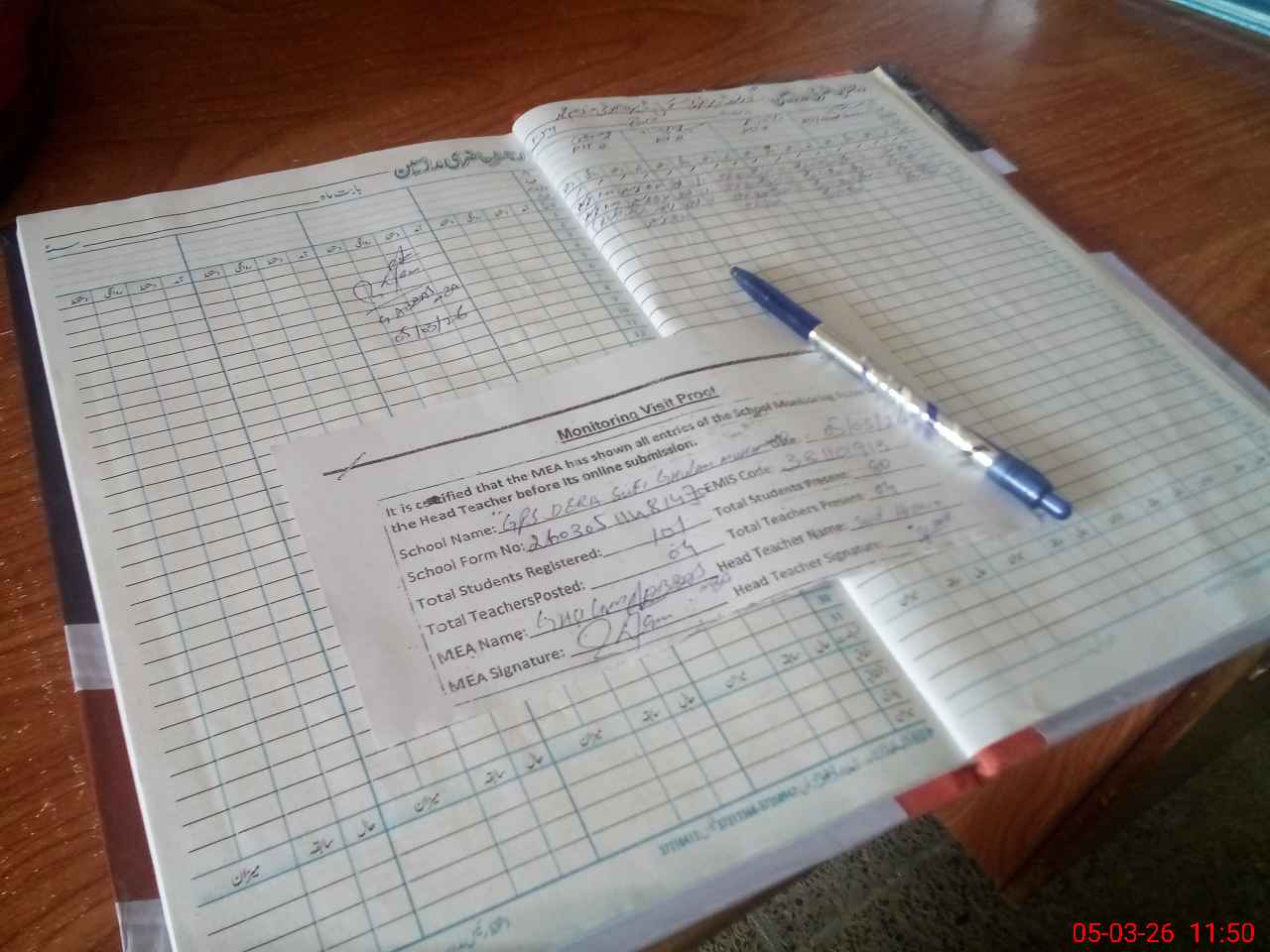 | Attendance Register | Head Teacher | MEA with School | Visit Proof |