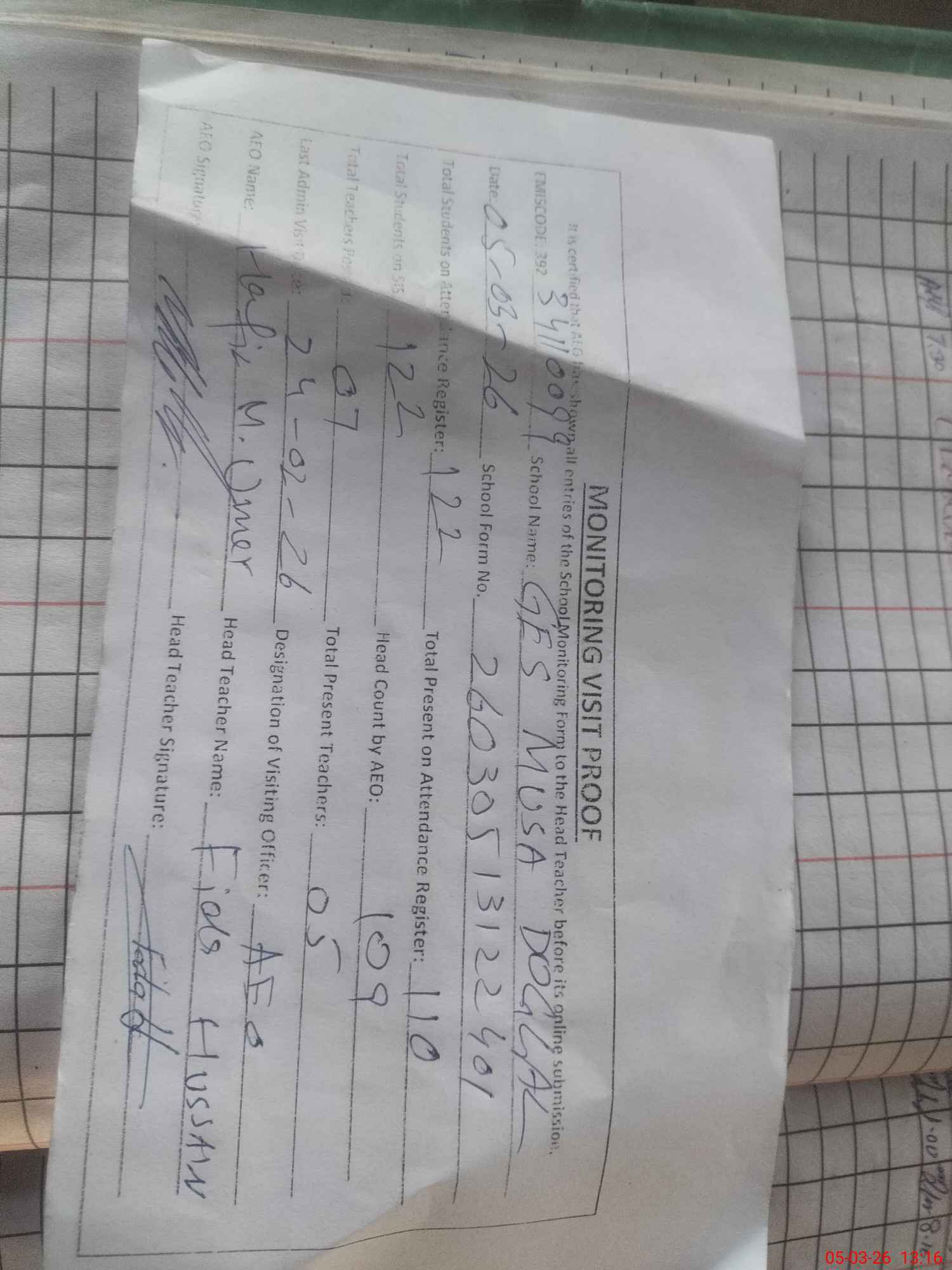 | EMIS Code: 34110099 | Name of School: GES MUSA DUGGAL | |||