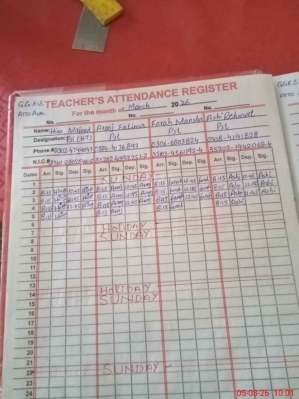 | Name: HI**** MA**** Designation: (School Headmaster's/Headmistress's) PST Phone/Cell Number: 03**** |