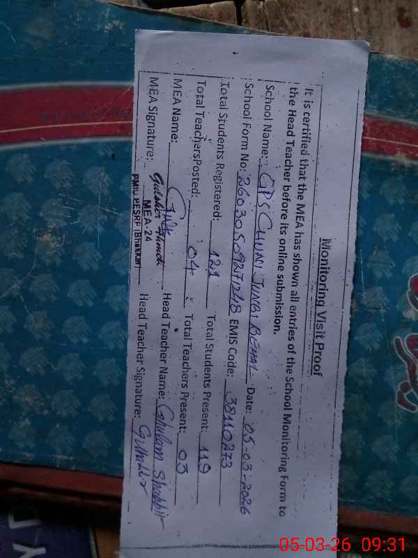 | EMIS Code: 38110273 | Name of School: GPS CHUNI JUNBI BEHAL | |||
