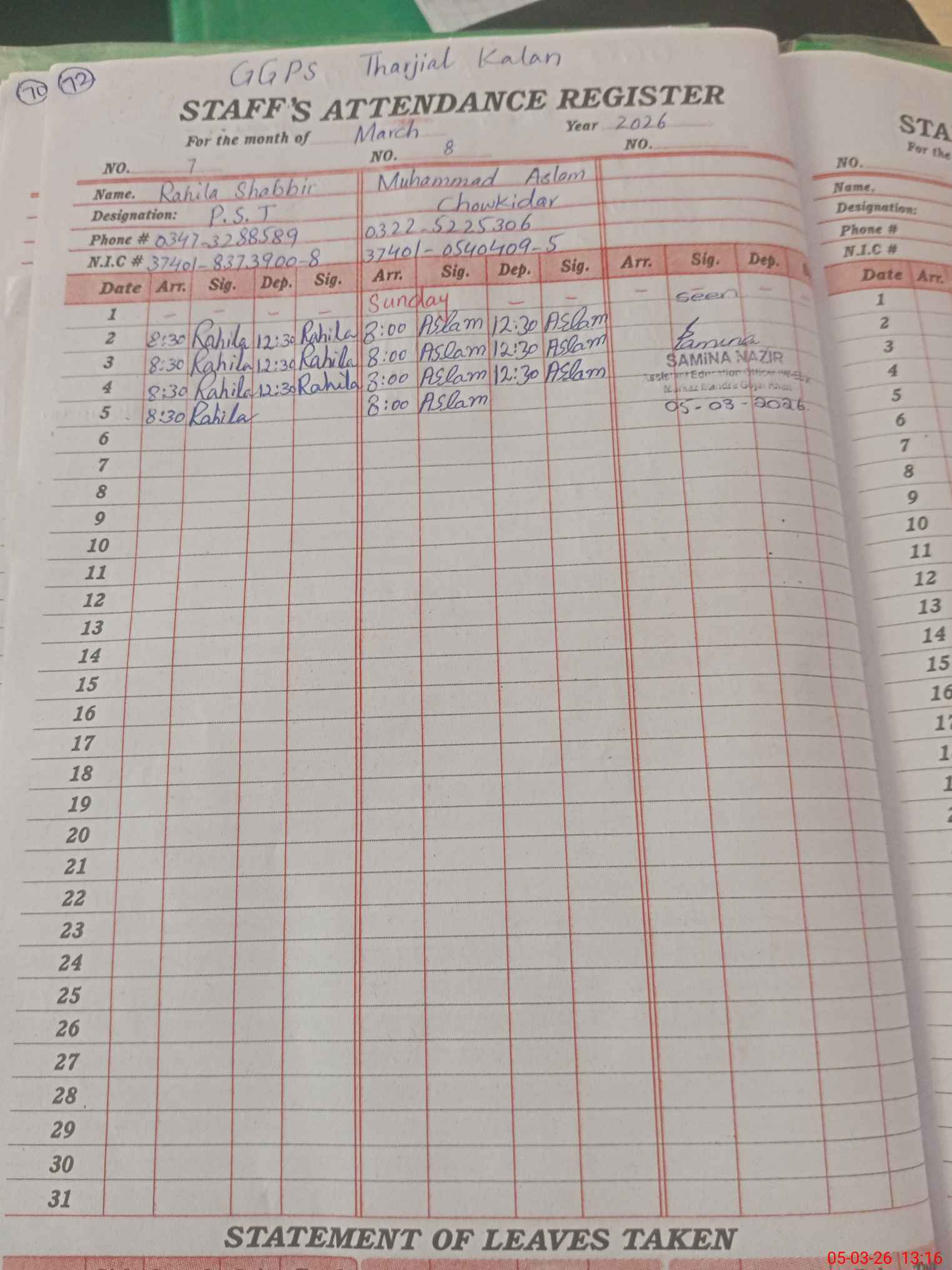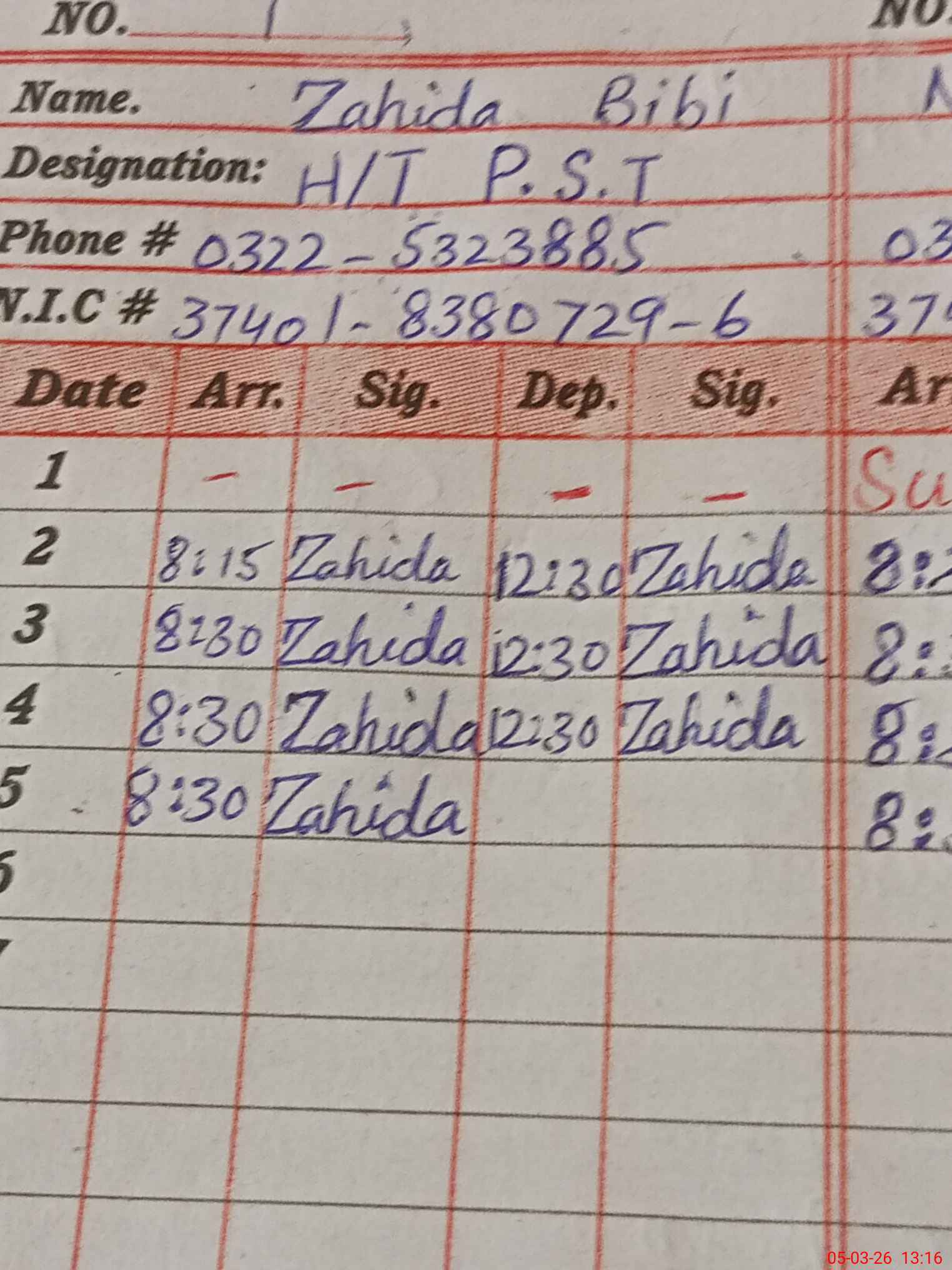 | Name: Za**** Bi**** Designation: (School Headmaster's/Headmistress's) PST Phone/Cell Number: 03**** |