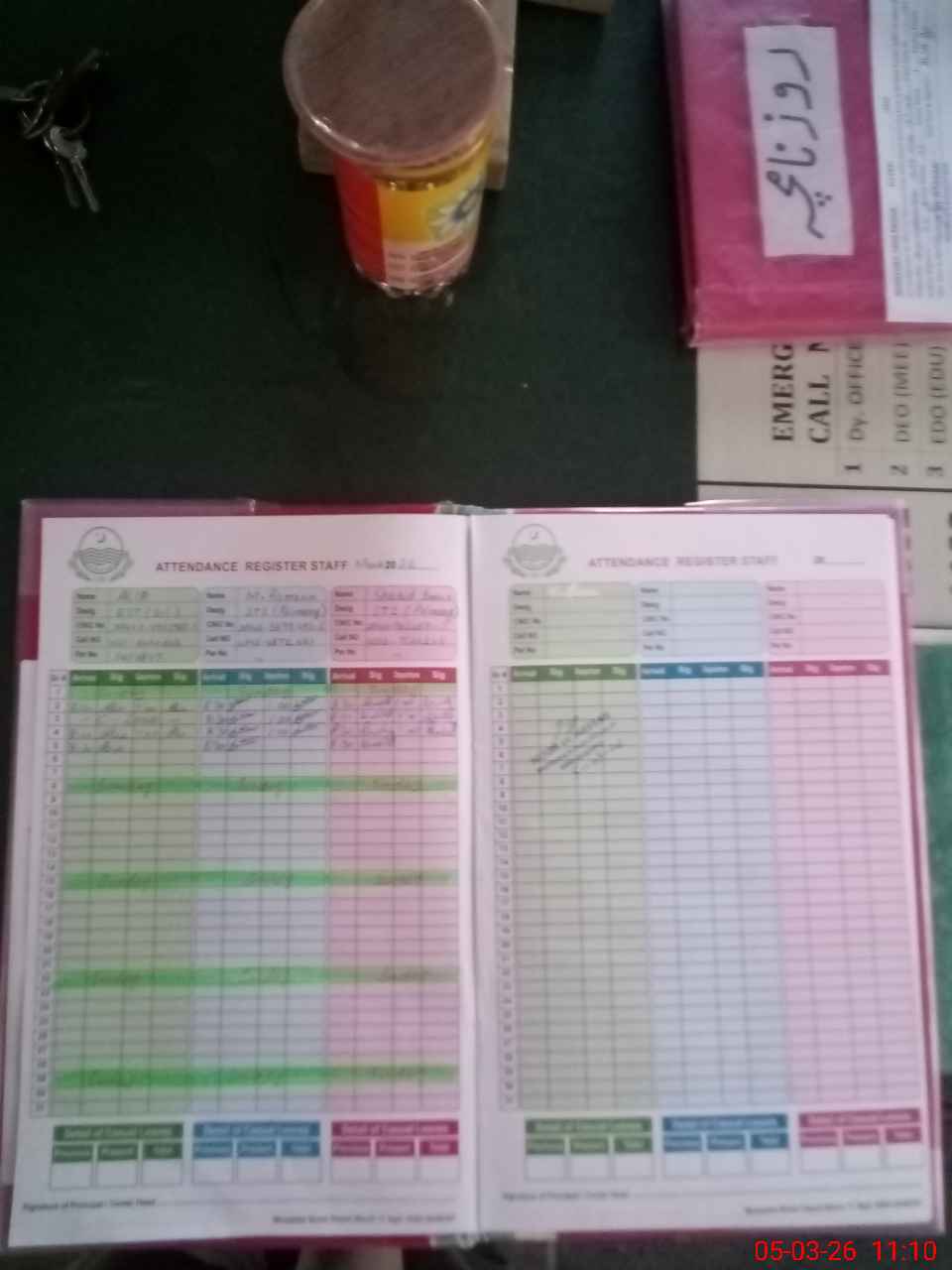 | CNIC | Full Name | Designation | R/C | Absence During Last Calender Month |