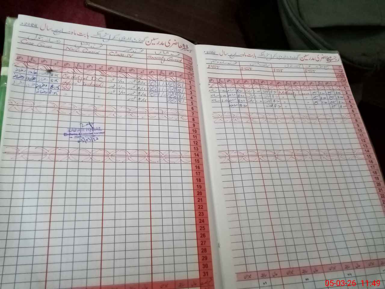 | CNIC | Full Name | Designation | R/C | Absence During Last Calender Month |