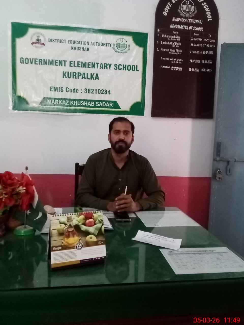 | Name: Uz**** Sa**** Designation: (School Headmaster's/Headmistress's) Est Incharge Phone/Cell Number: 03**** |
