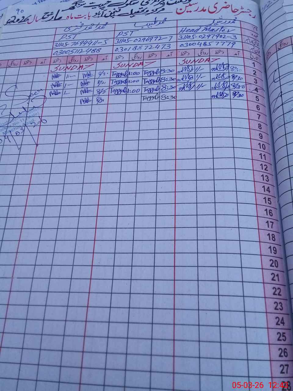 | Name: Mu**** Ra**** Designation: (School Headmaster's/Headmistress's) P S T Phone/Cell Number: 03**** |
