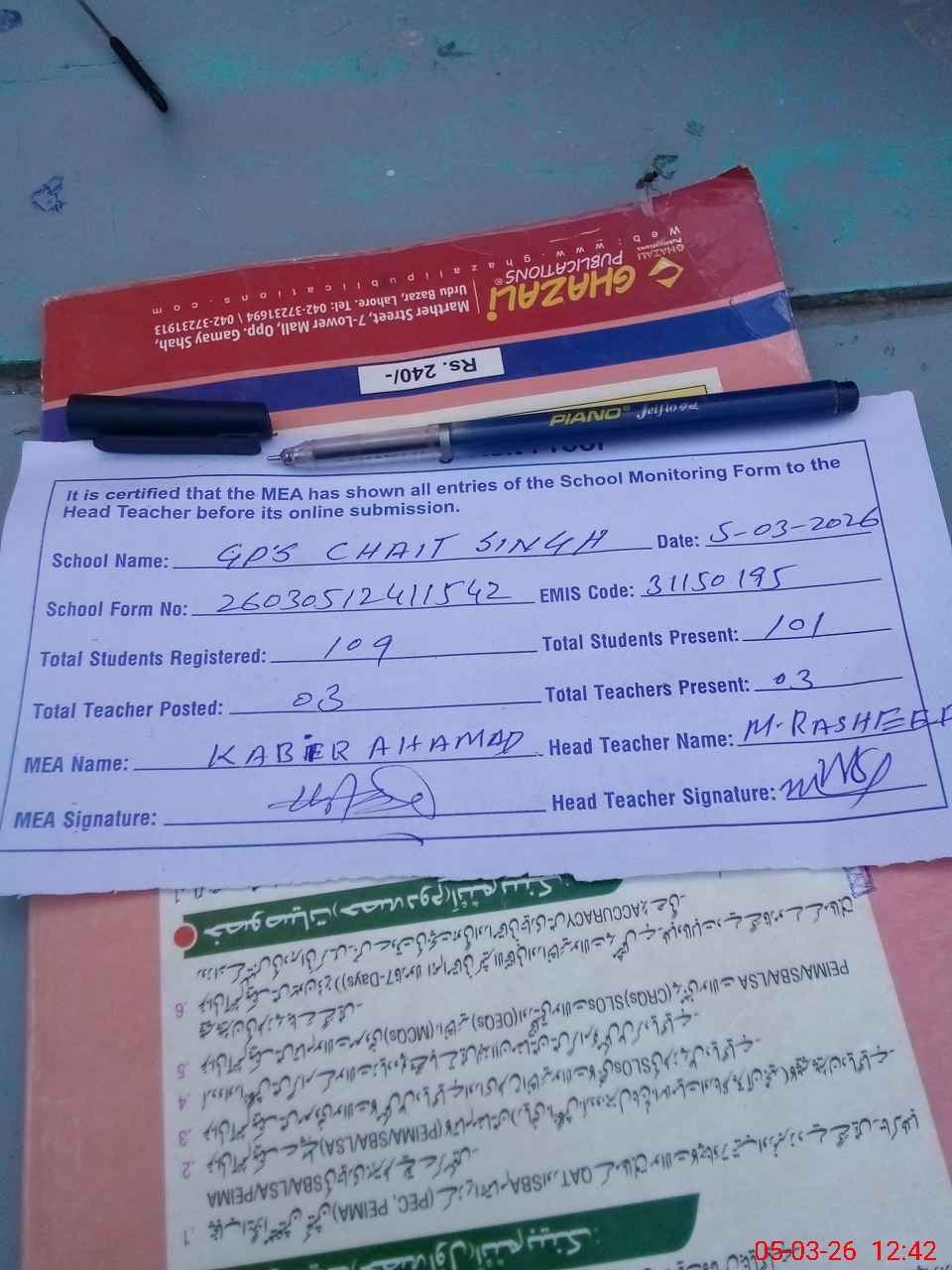 | EMIS Code: 31150195 | Name of School: GPS CHAIT SINGH | |||