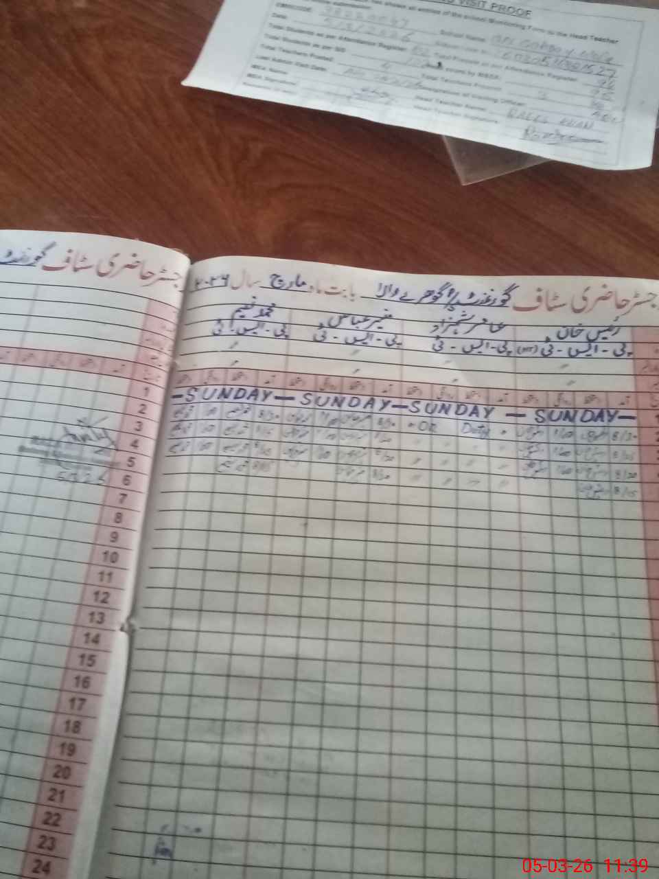 | Attendance Register | Head Teacher | MEA with School | Visit Proof |