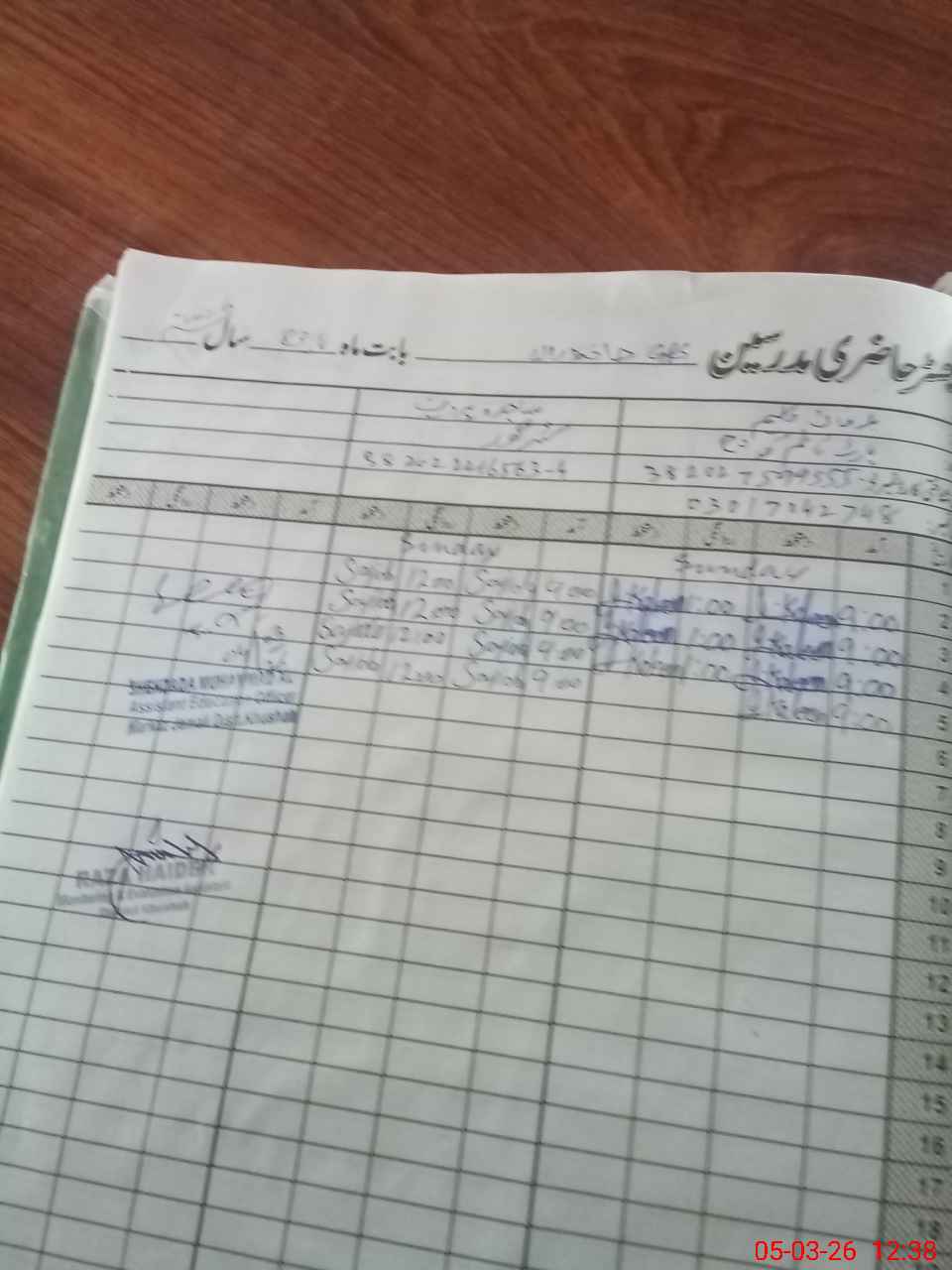 | Name: NA**** AH**** Designation: (School Headmaster's/Headmistress's) PST Phone/Cell Number: 03**** |