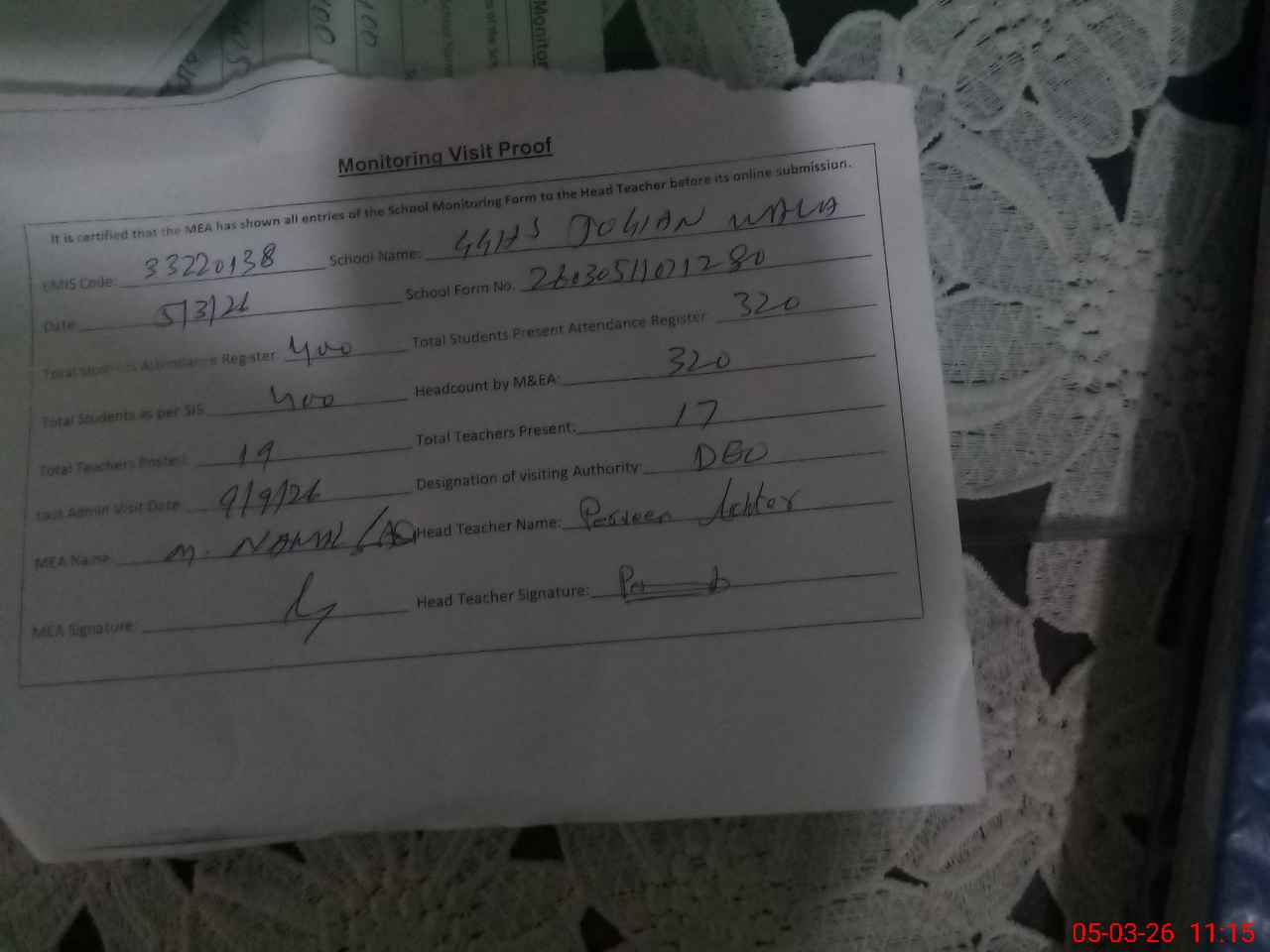 | EMIS Code: 33220138 | Name of School: GGHS JOGIAN WALA | |||