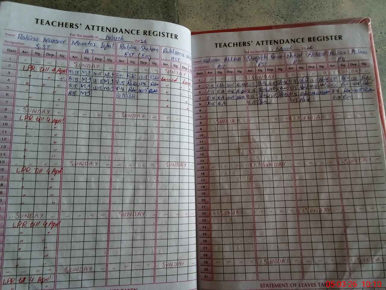 | 36**** | An**** Kh**** | PST Science/Maths | Regular | 30 | 0 | 0 | 0 | 30 | 0 | 0 | 0 | 0 | Maternity |