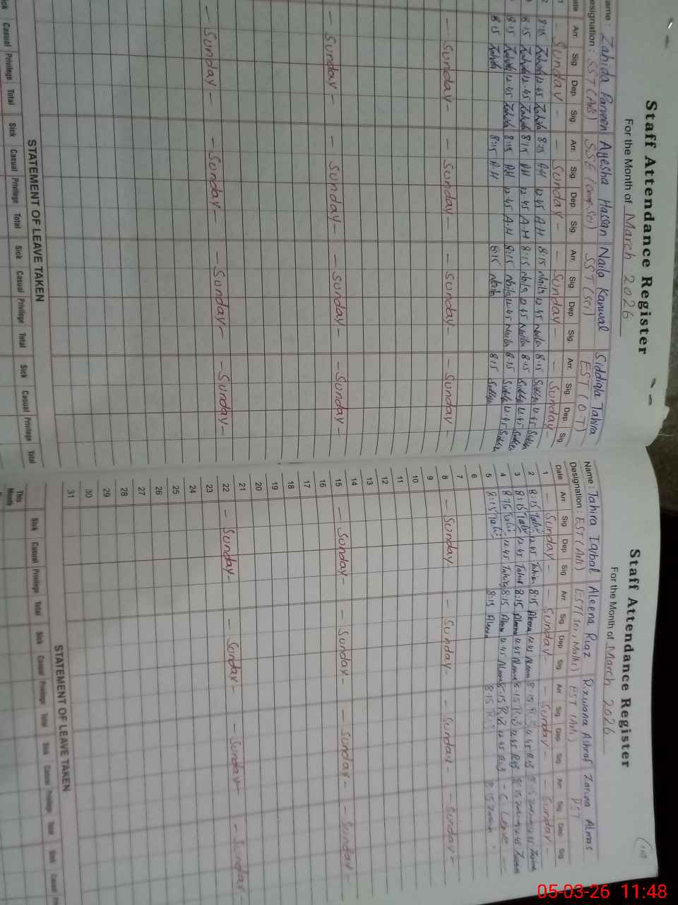 | Leave | Duty | Absent | Maternity | Medical | Ex- Pak |