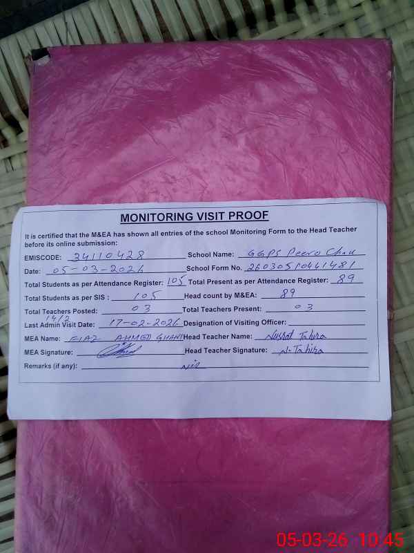 | EMIS Code: 34110428 | Name of School: GGPS PEERO CHAK | |||