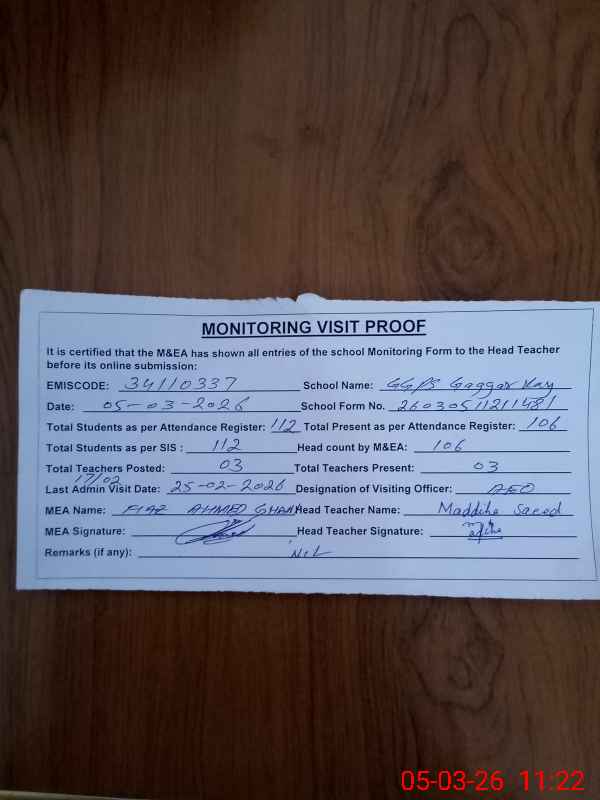 | EMIS Code: 34110337 | Name of School: GGPS GAGGAR KEY | |||