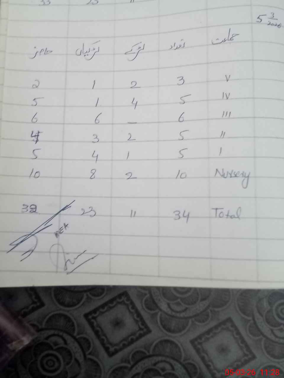 | Total Students Present | 0 | 0 | 5 | 4 | 6 | 5 | 2 | 32 | ||||||||