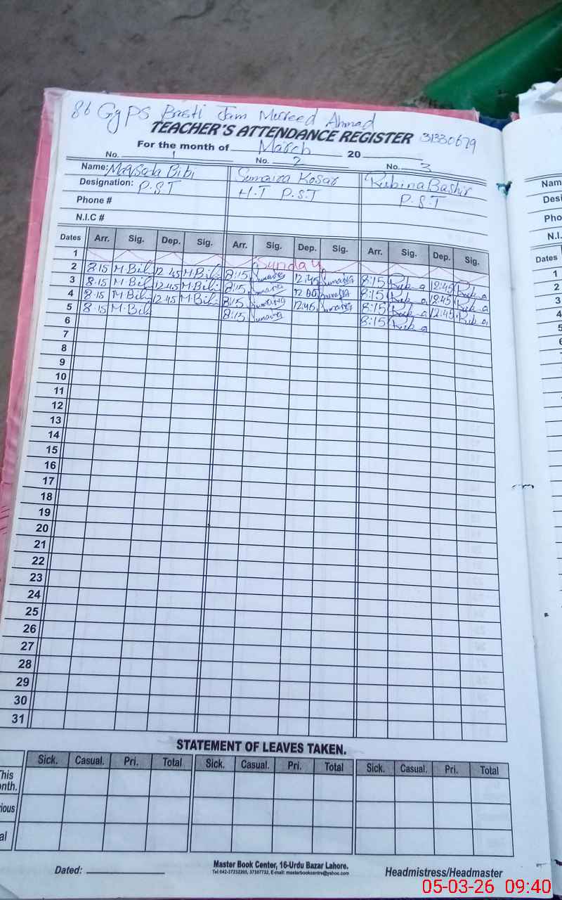 | Name: MA**** BI**** Designation: (School Headmaster's/Headmistress's) PST/PTC/JV Phone/Cell Number: 03**** |