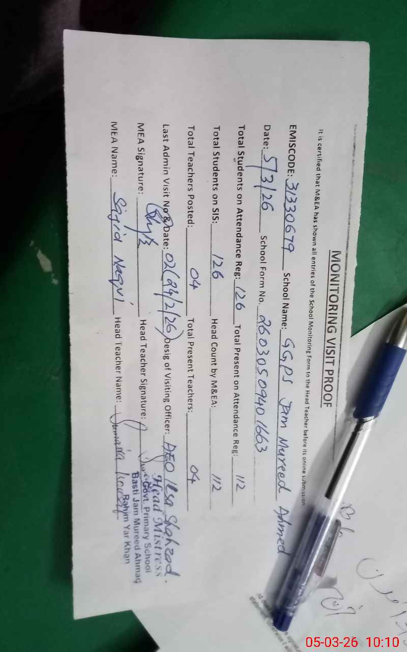 | EMIS Code: 31330679 | Name of School: GGPS BASTI JAM MUREED AHMED | |||