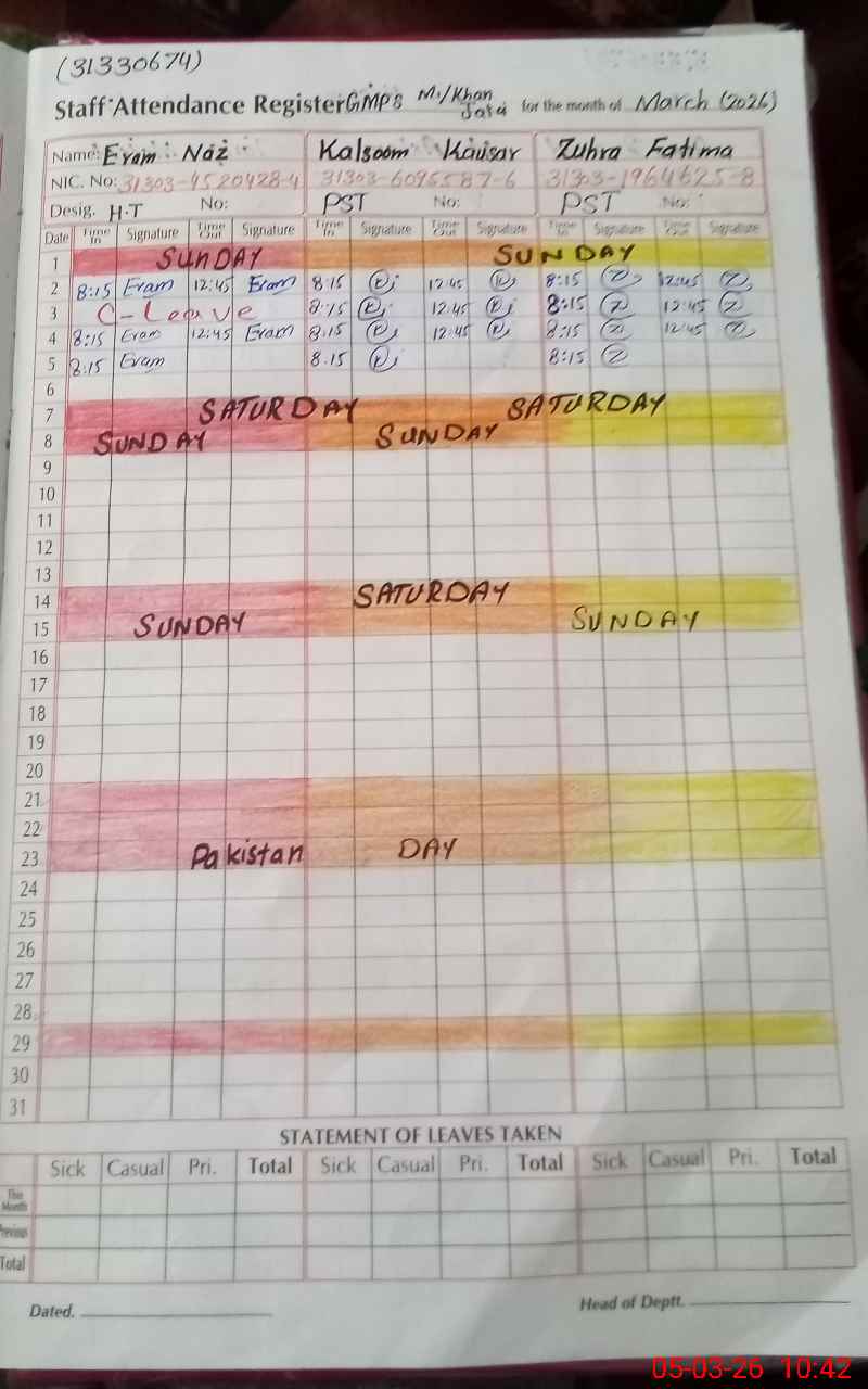 | EMIS Code: 31330674 | Name of School: GMPS MUHAMMAD KHAN JATOI | |||