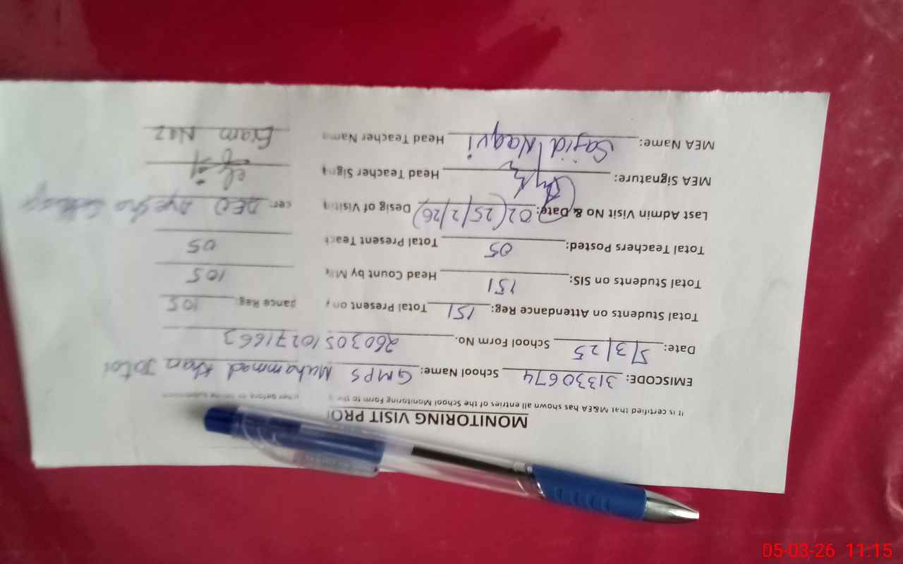 | Monitoring Date: 05-03-2026 | Start Time: 05-03-2026 10:27 AM | End Time: 05-03-2026 11:17 AM | Name of MEA: Sa**** ulHa**** | |
