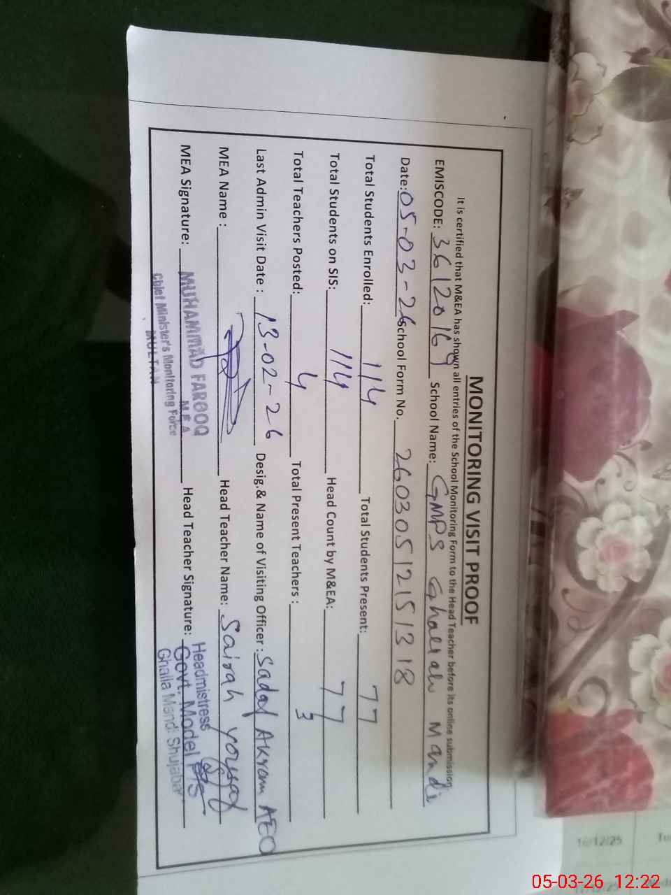 | EMIS Code: 36120169 | Name of School: GMPS GHALLA MANDI SHUJABAD | |||