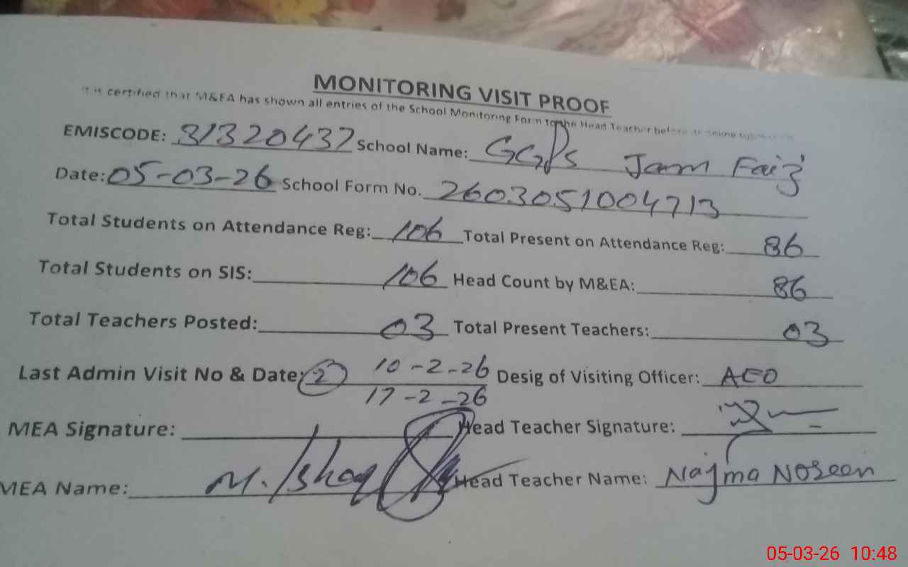 | EMIS Code: 31320437 | Name of School: GGPS JAM FAIZ | |||
