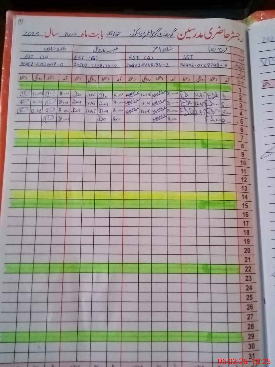 | Name: FA**** DE**** Designation: (School Headmaster's/Headmistress's) SST (GENERAL) Phone/Cell Number: 03**** |