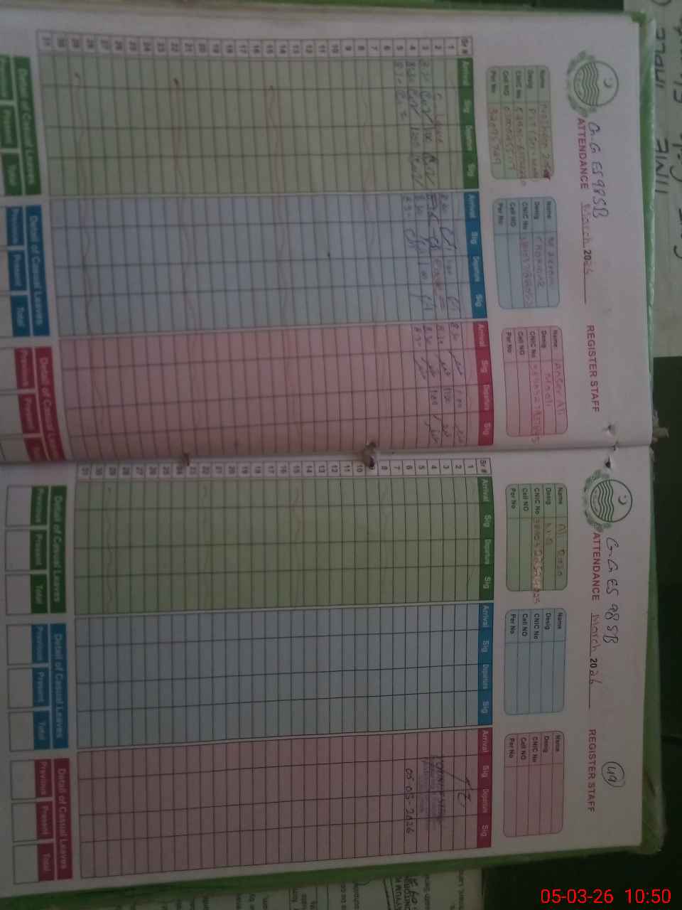 | CNIC | Full Name | Designation | R/C | Absence During Last Calender Month |