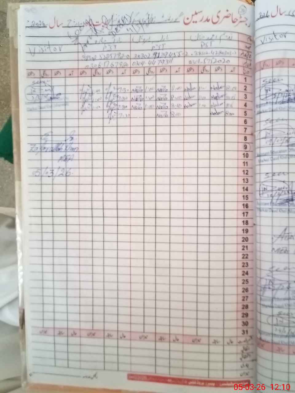 | Name: Na**** Ah**** Kh**** Designation: (School Headmaster's/Headmistress's) PST Phone/Cell Number: 03**** |