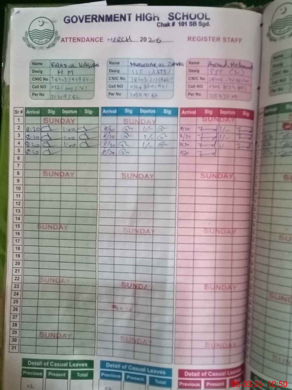 | Name: FA**** ULHA**** Designation: (School Headmaster's/Headmistress's) SST (CS) Phone/Cell Number: 03**** |