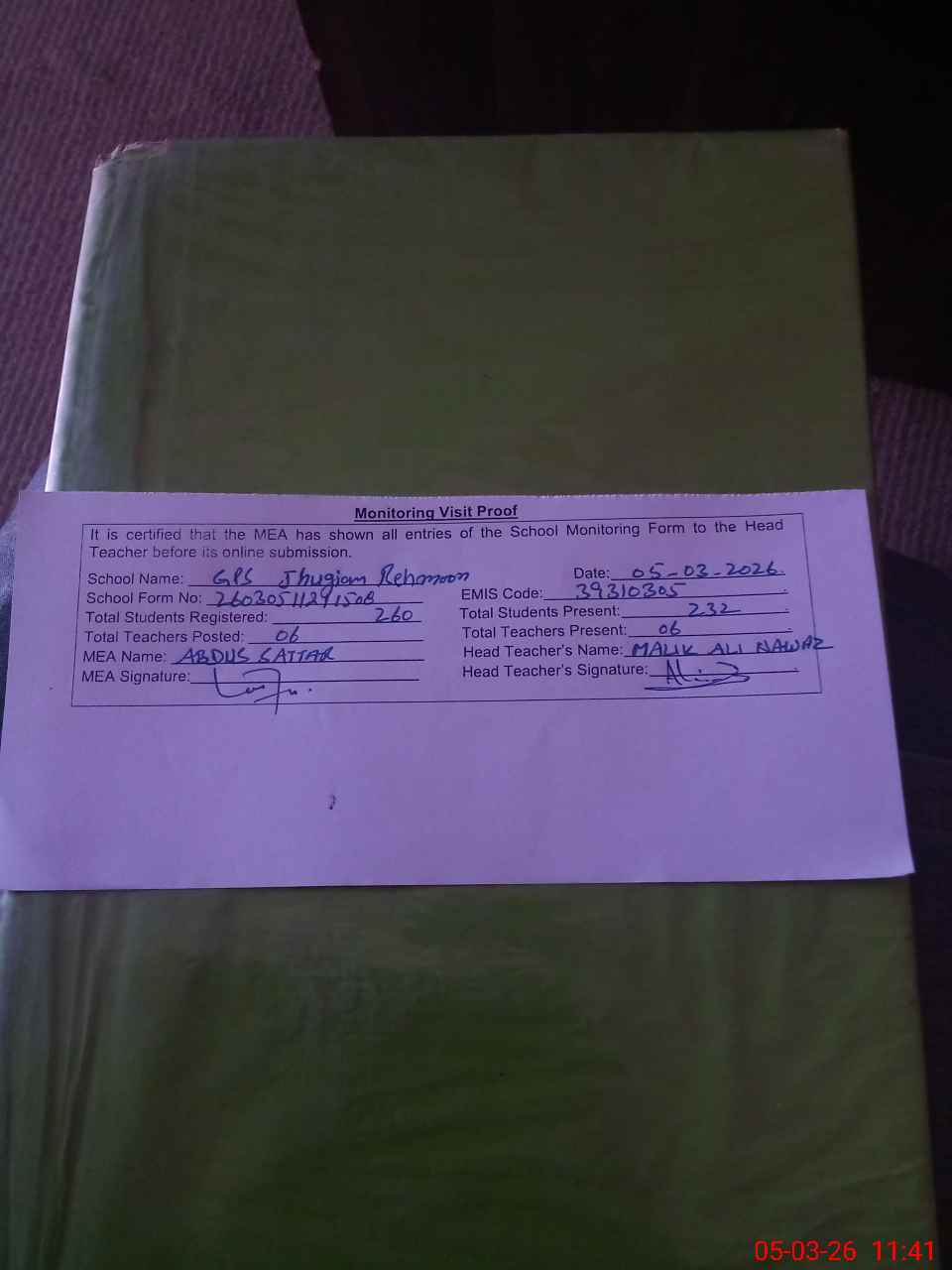| EMIS Code: 39310305 | Name of School: GPS JHUGIAN REHMOON | |||
