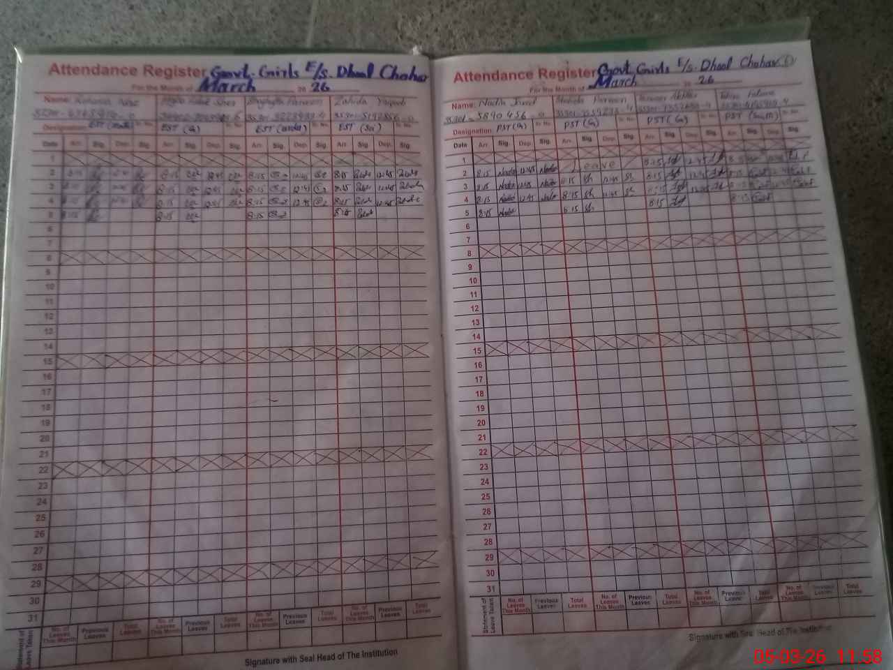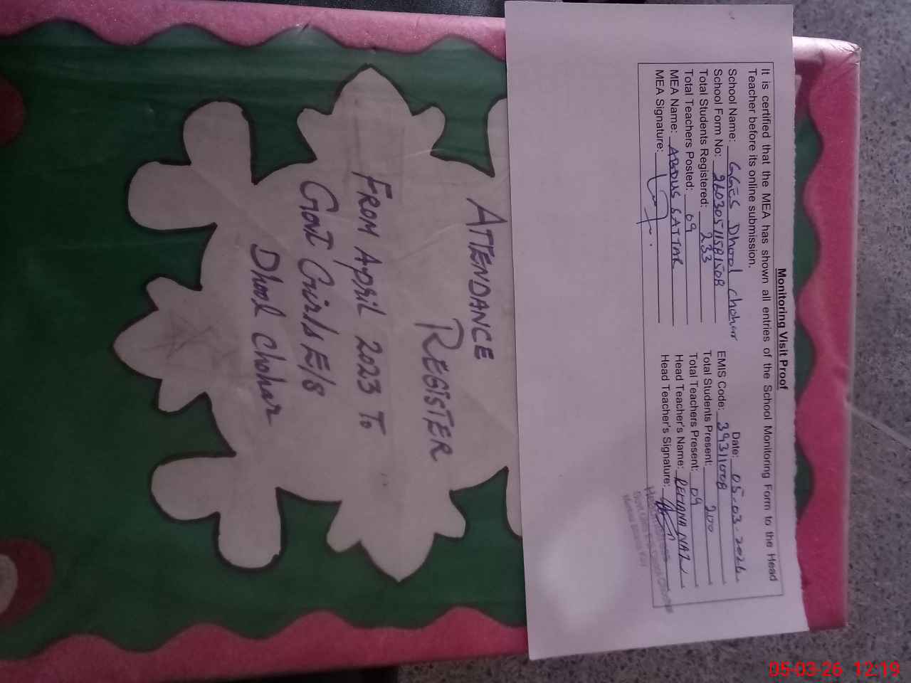 | Attendance Register | Head Teacher | MEA with School | Visit Proof |