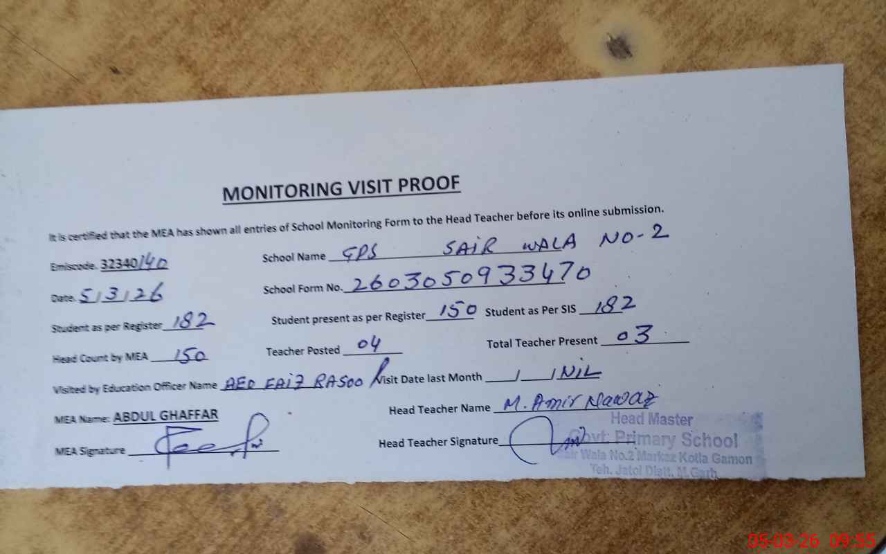 | EMIS Code: 32340140 | Name of School: GPS SAIR WALA NO. 2 | |||