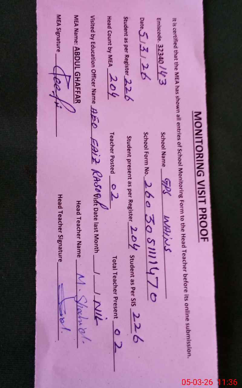 | EMIS Code: 32340143 | Name of School: GPS WAINS | |||
