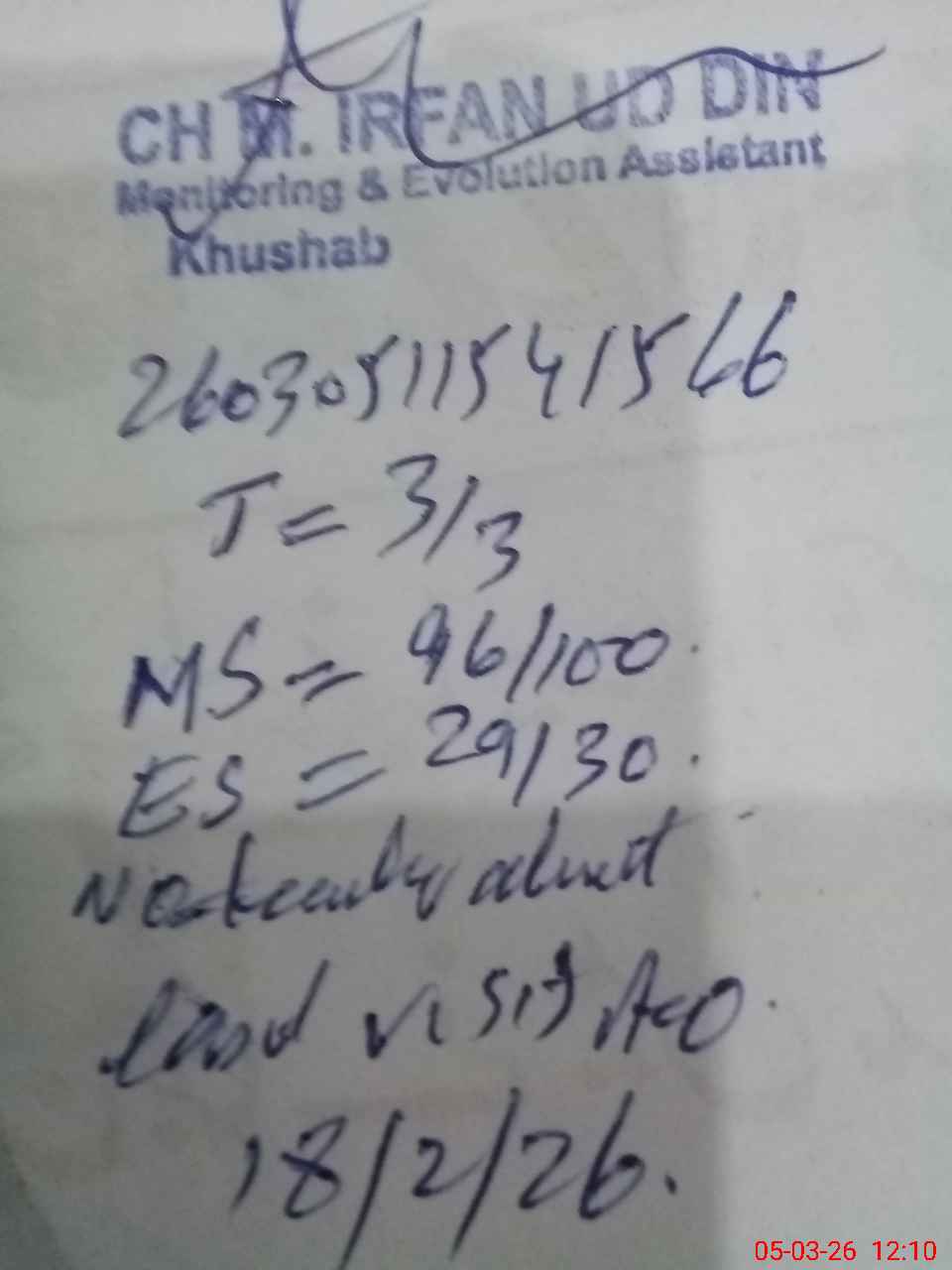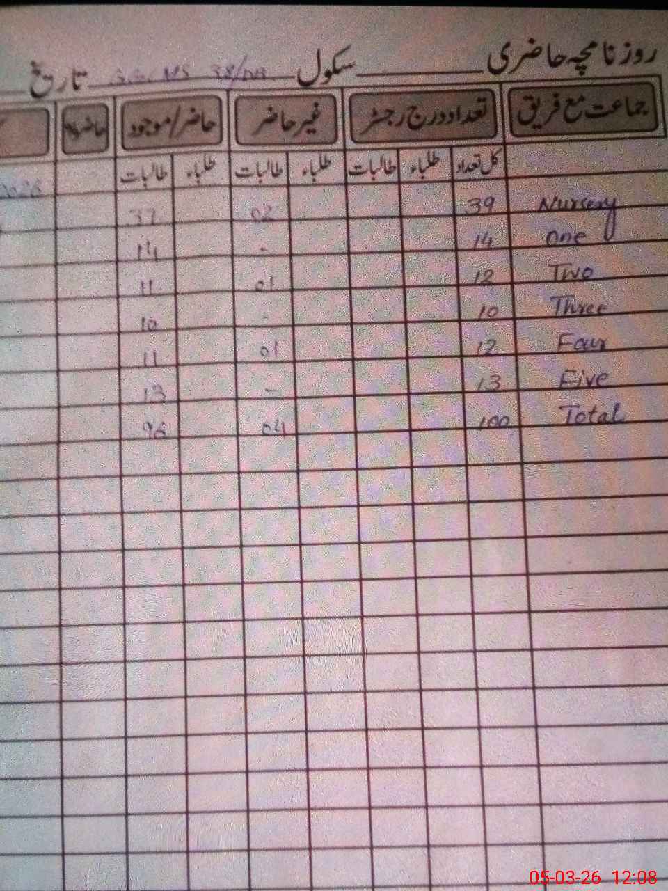 | Remarks (Use Separate Page if Required): ggcms 38 db student on sis 135 student on register 131 head count morning 96 head count evening 29 no teacher absent last visit aeo 18 feb | |||||