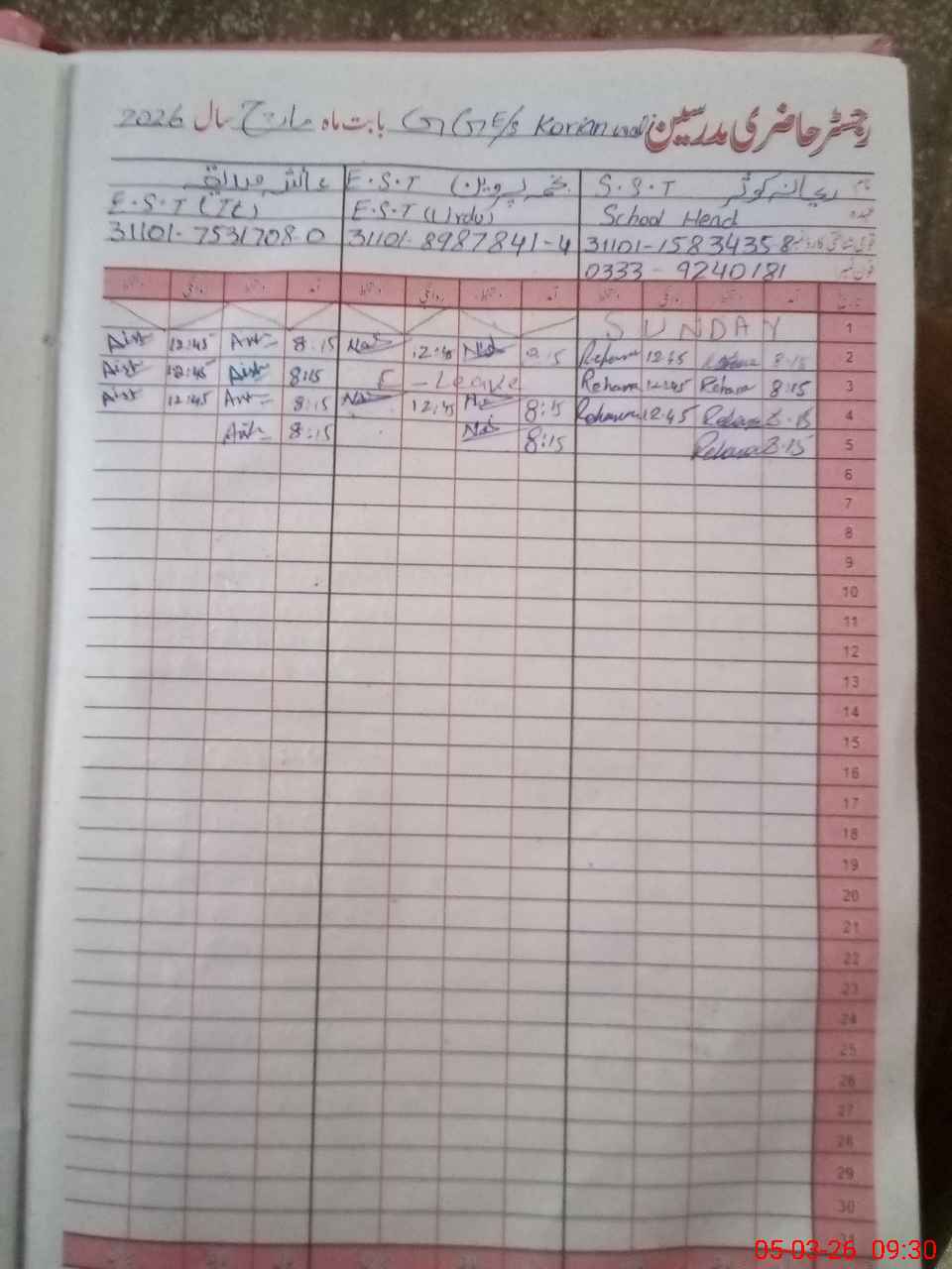 | Name: Re**** Ko**** Designation: (School Headmaster's/Headmistress's) SST Phone/Cell Number: 03**** |