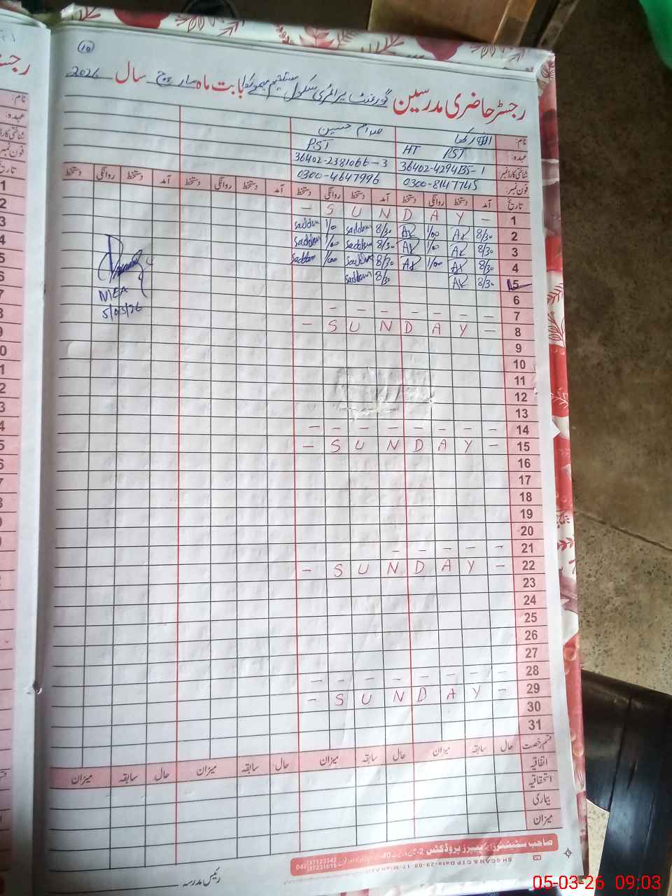 | Name: AL**** RA**** Designation: (School Headmaster's/Headmistress's) PST Phone/Cell Number: 03**** |