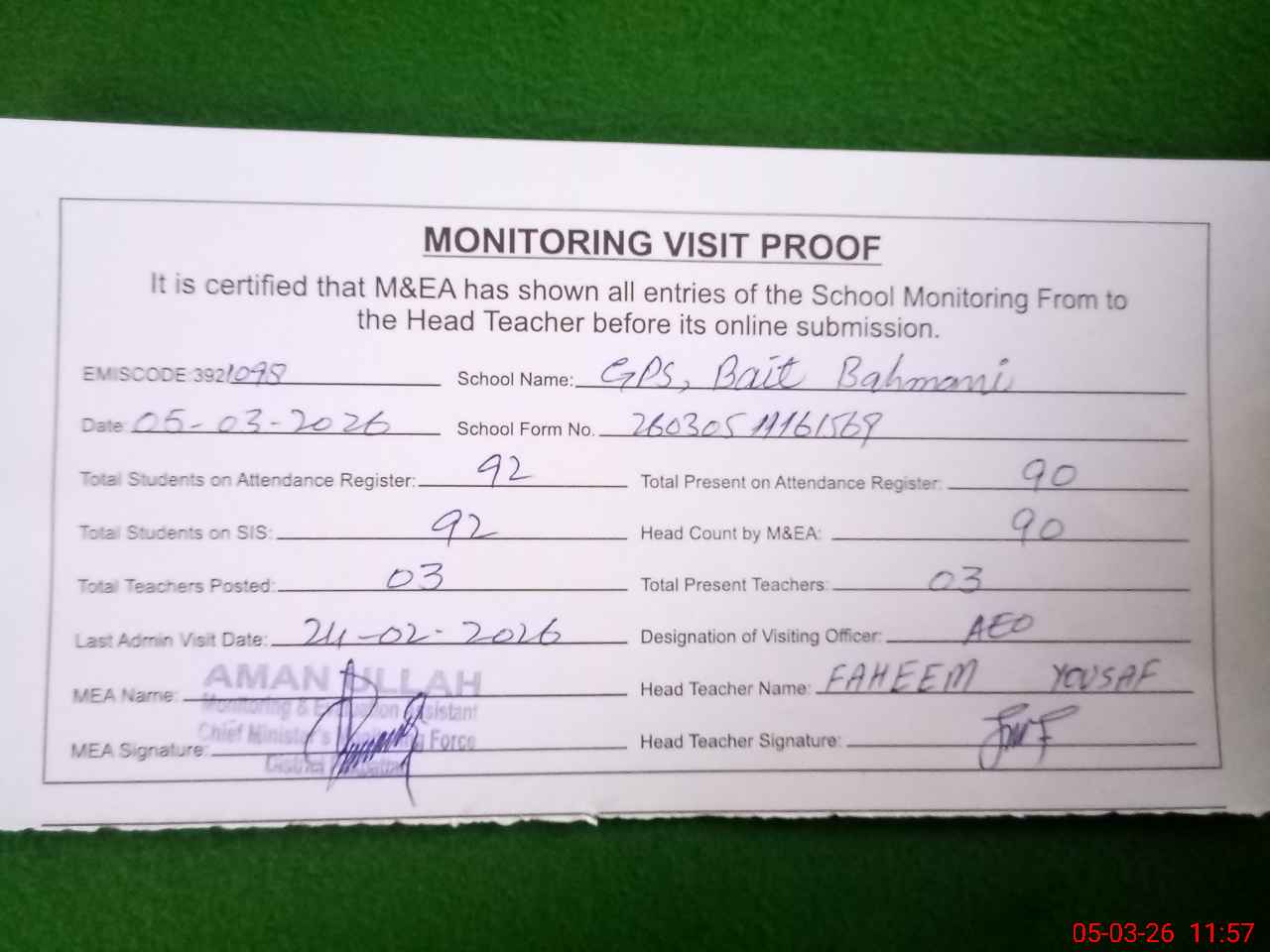 | EMIS Code: 39210198 | Name of School: GPS BAIT BAHMANI | |||