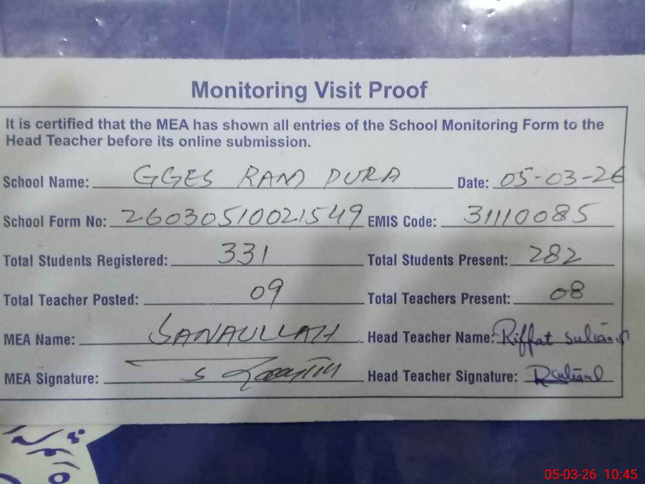 | EMIS Code: 31110085 | Name of School: GGES RAM PURA (BWN) | |||
