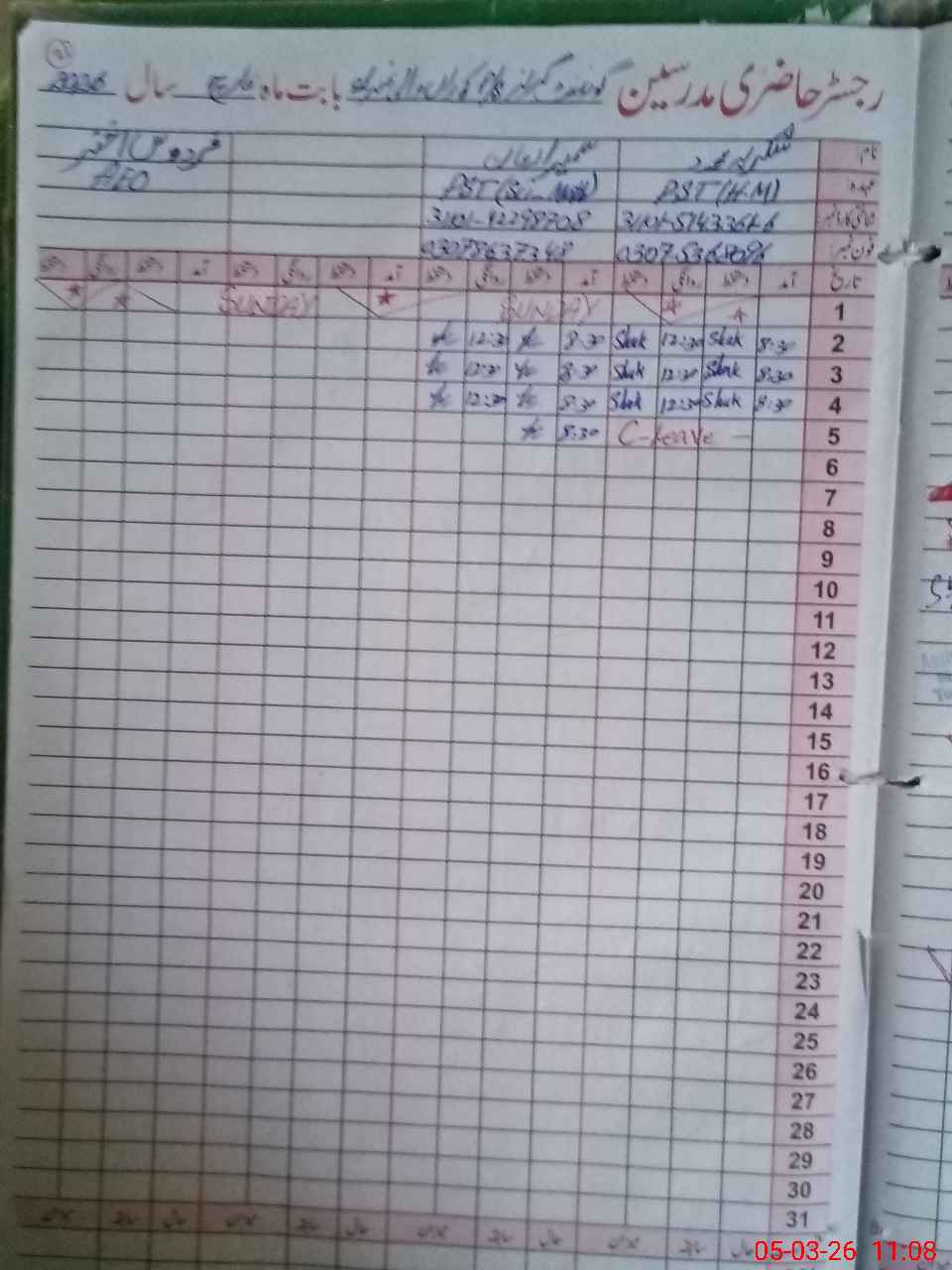 | Name: Sh**** ME**** Designation: (School Headmaster's/Headmistress's) PST Phone/Cell Number: 03**** |