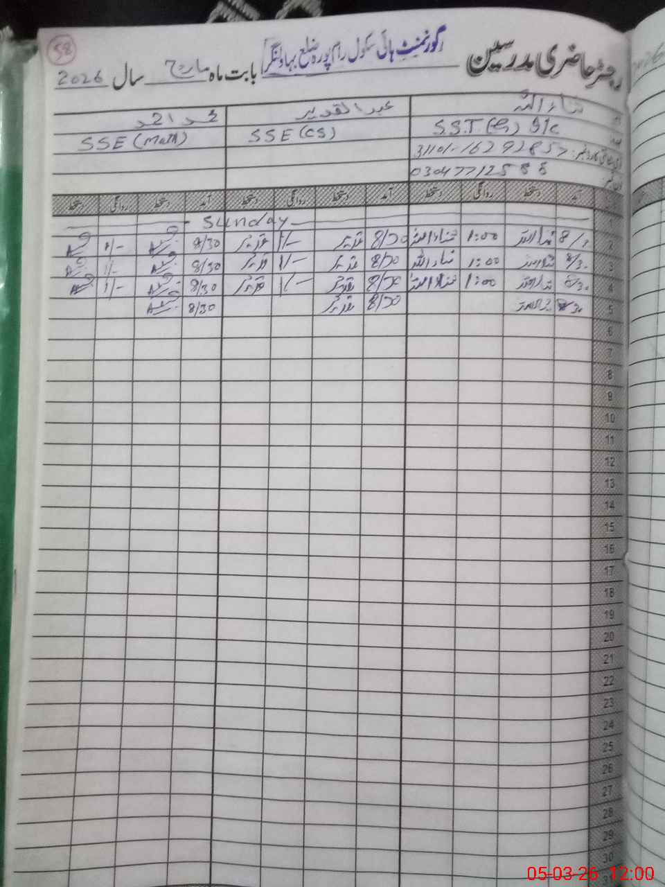 | Name: Sa**** Designation: (School Headmaster's/Headmistress's) SSt Phone/Cell Number: 03**** |