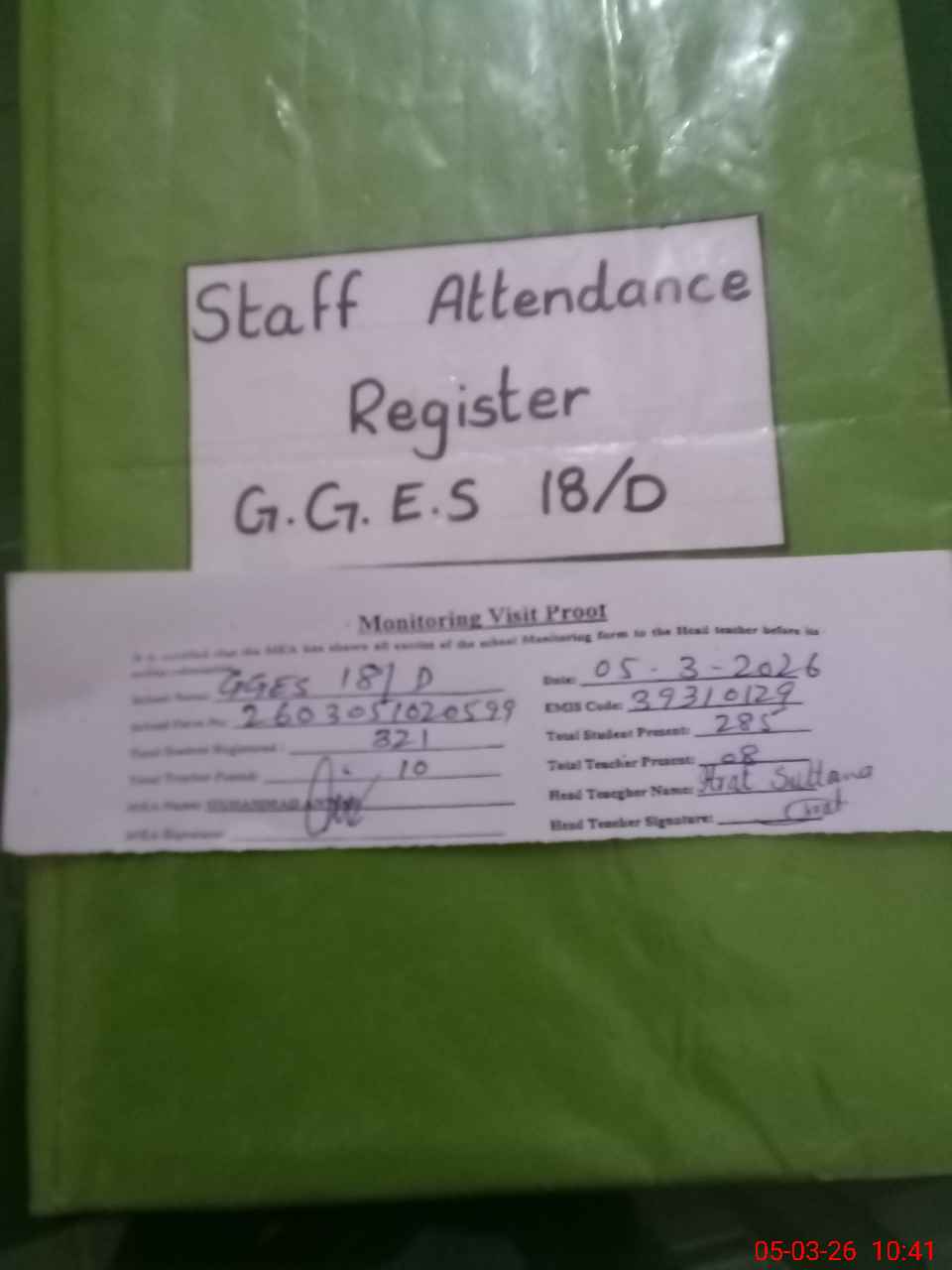 | EMIS Code: 39310129 | Name of School: GGES 18/D SHER GARH | |||